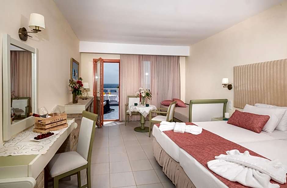 Getting around is a breeze with free on-site parking and optional shuttle services. Spend lazy days on the sun deck, challenge friends to a match on the free tennis court, or unwind in the luxurious spa (for those seeking pampering). After a day of fun in the sun, retreat to your comfortable, air-conditioned room, many of which offer delightful balconies for evening relaxation. With prices starting from a very wallet-friendly rate, you can treat yourself to a little slice of heaven at Kalypso Cretan Village Resort & Spa!